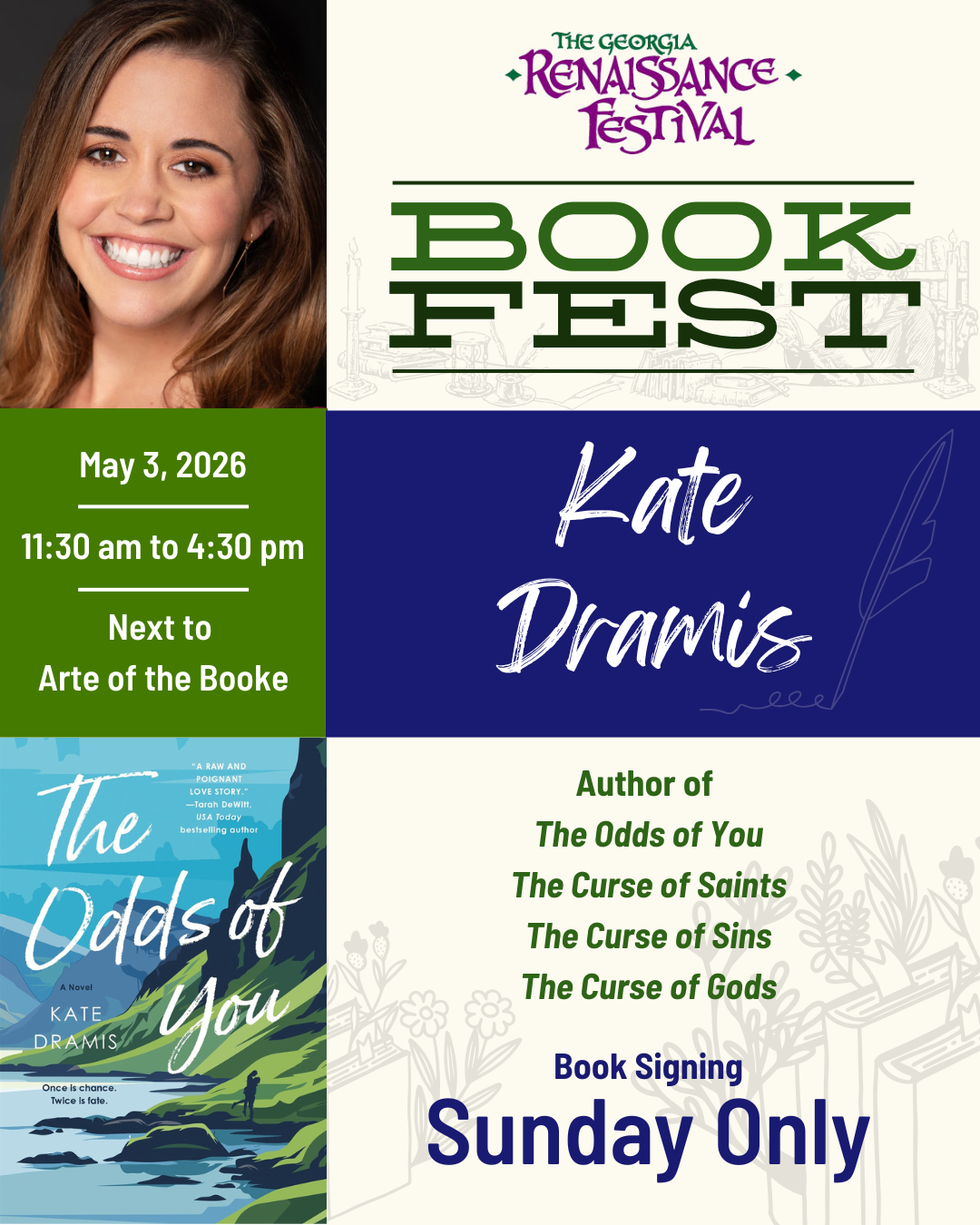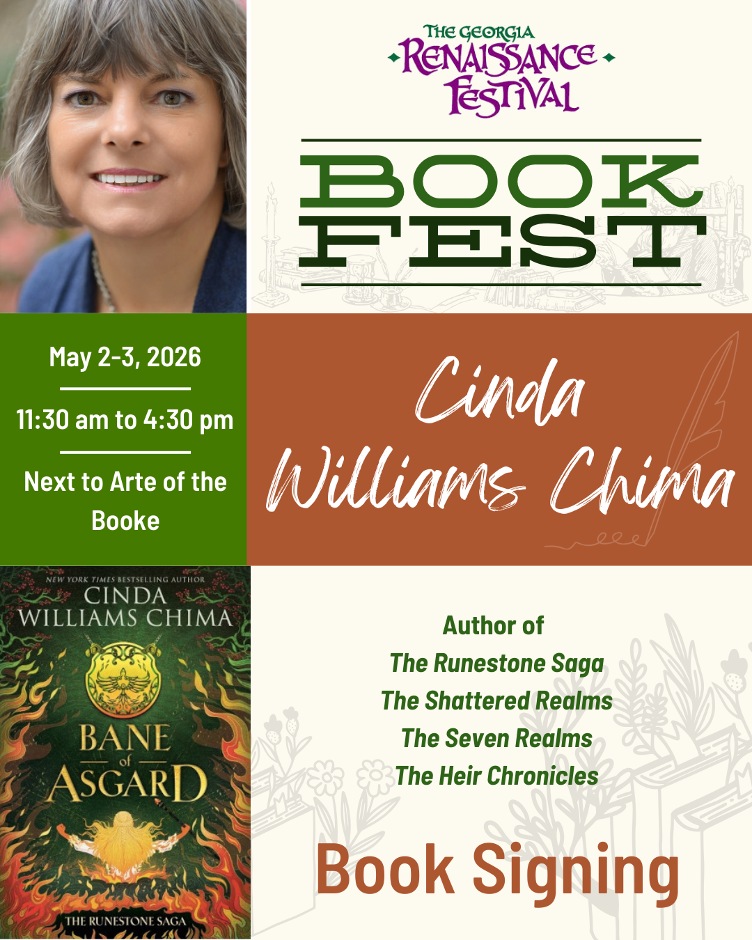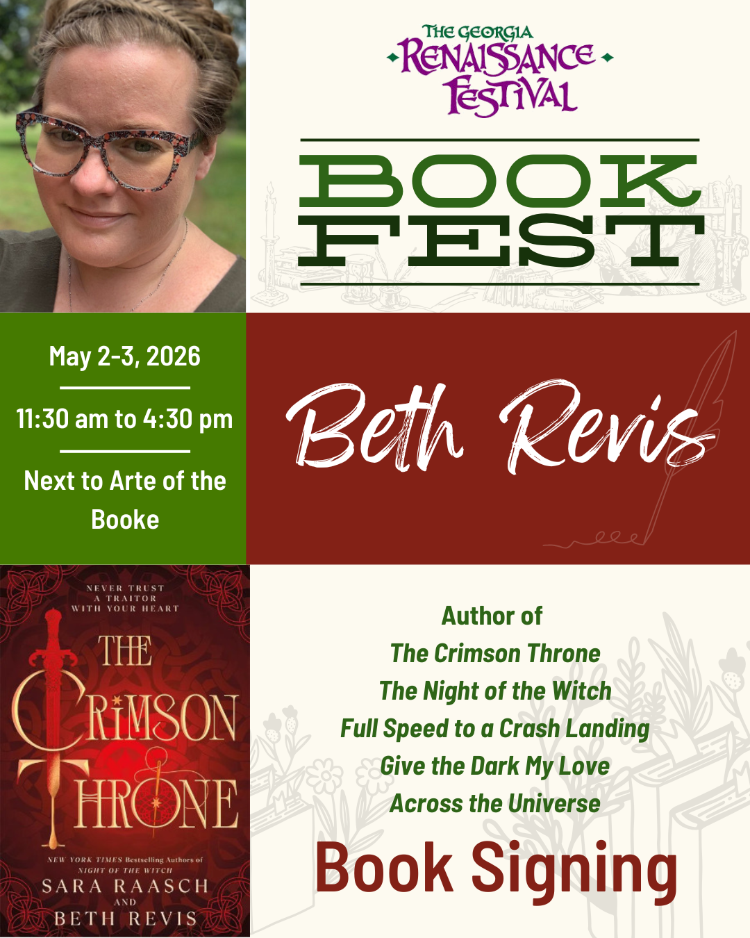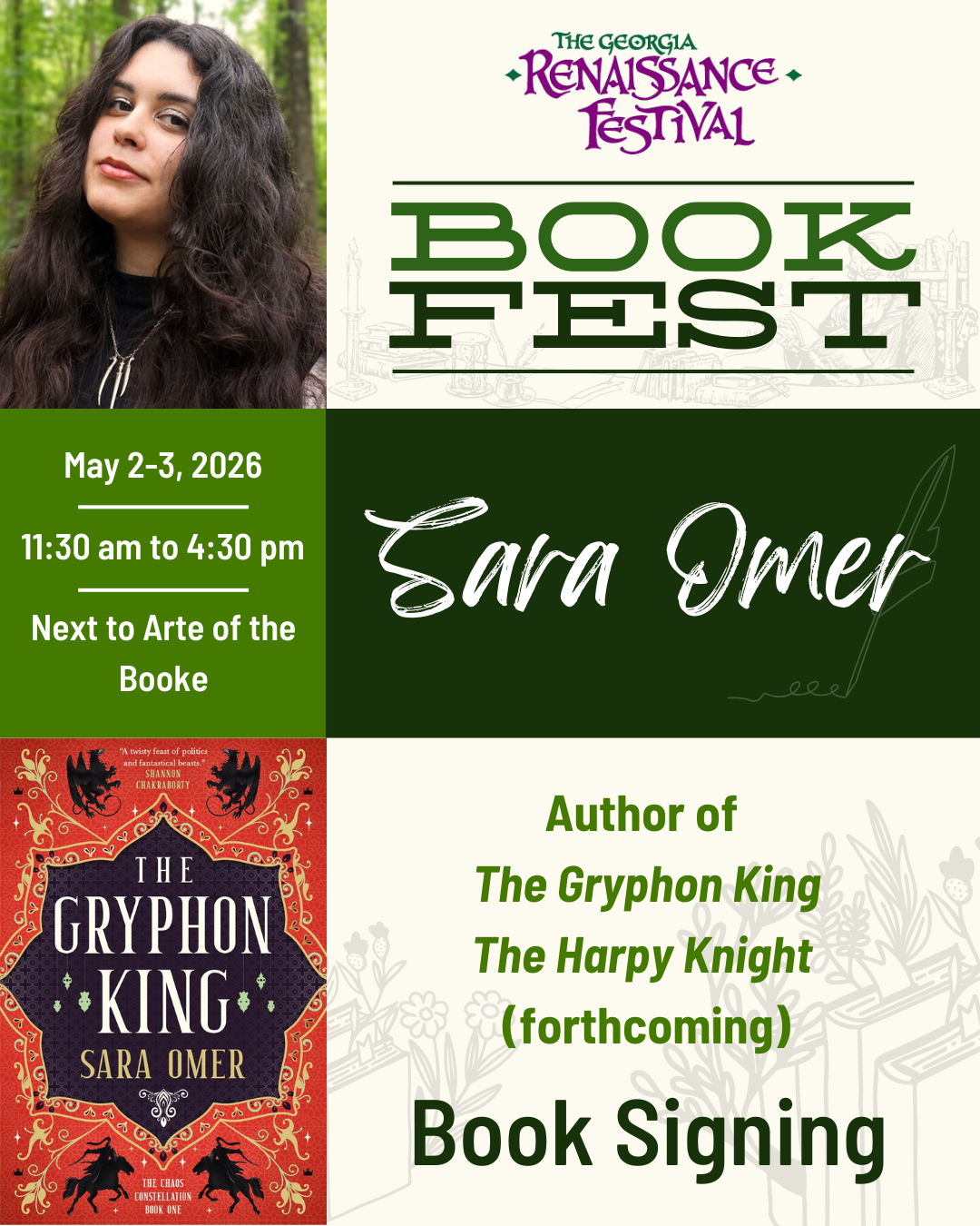 May 2-3, 2026 • 11:30 AM-4:30 PM • Outside Arte of the Booke (next to Middleton Stage)
