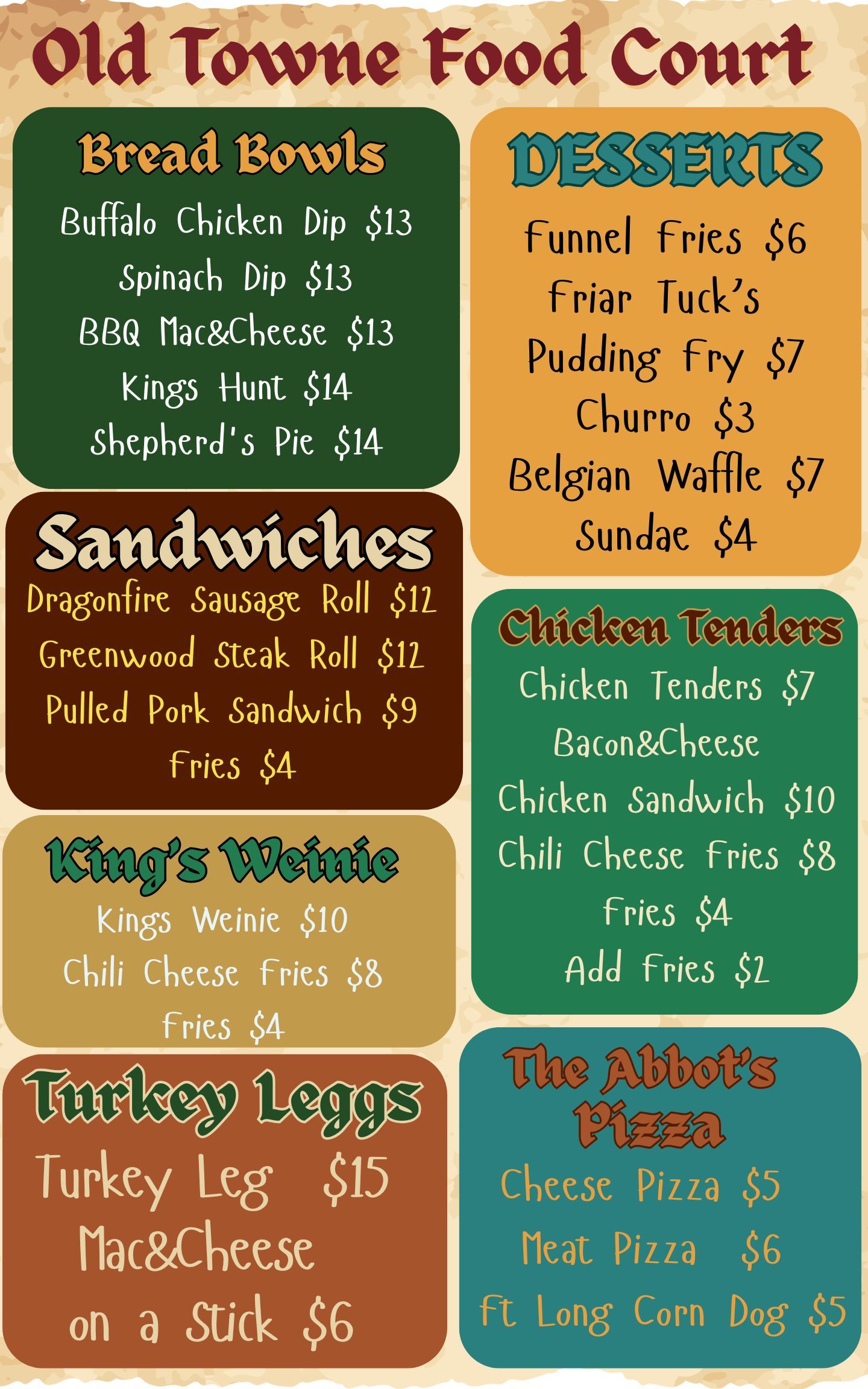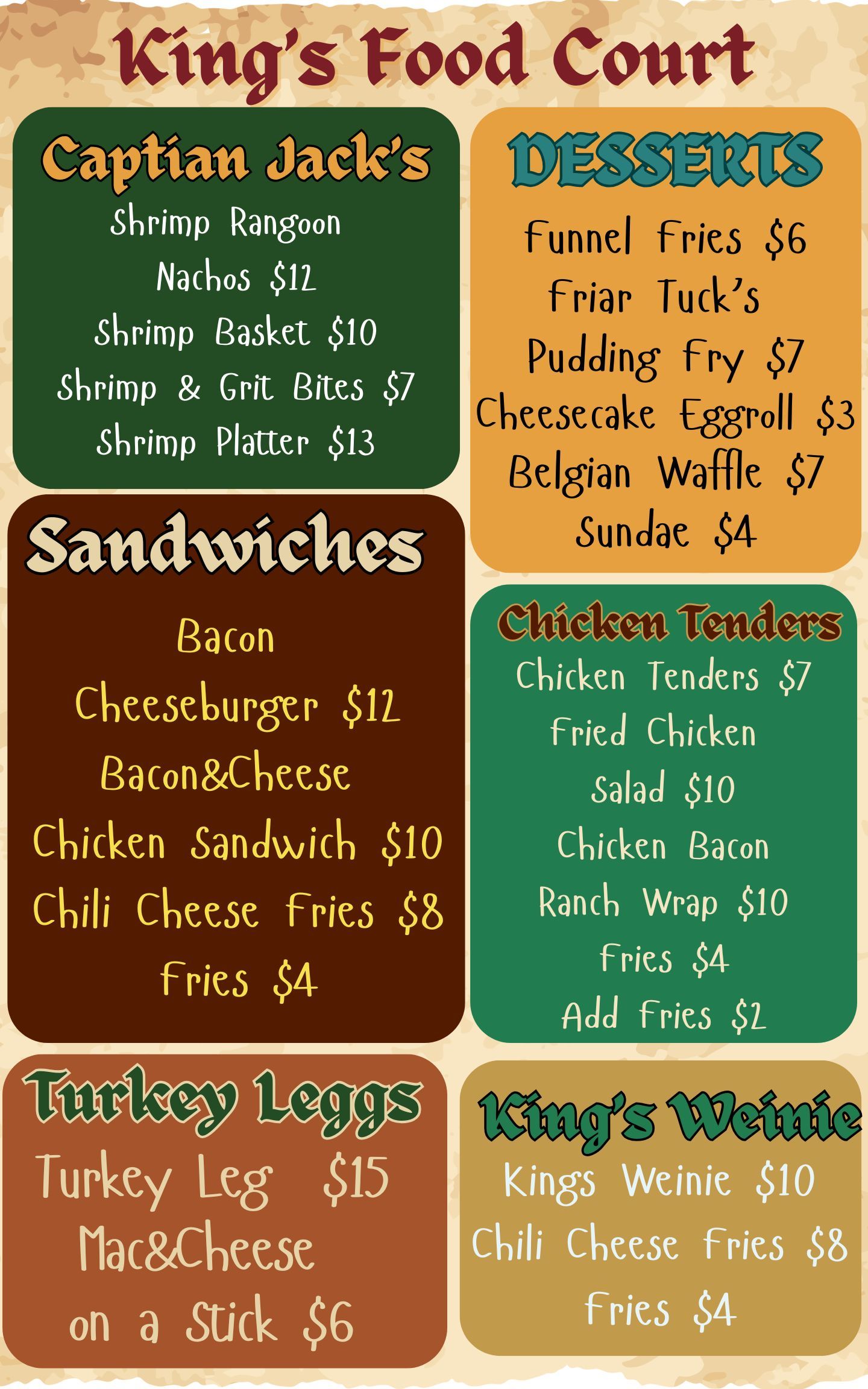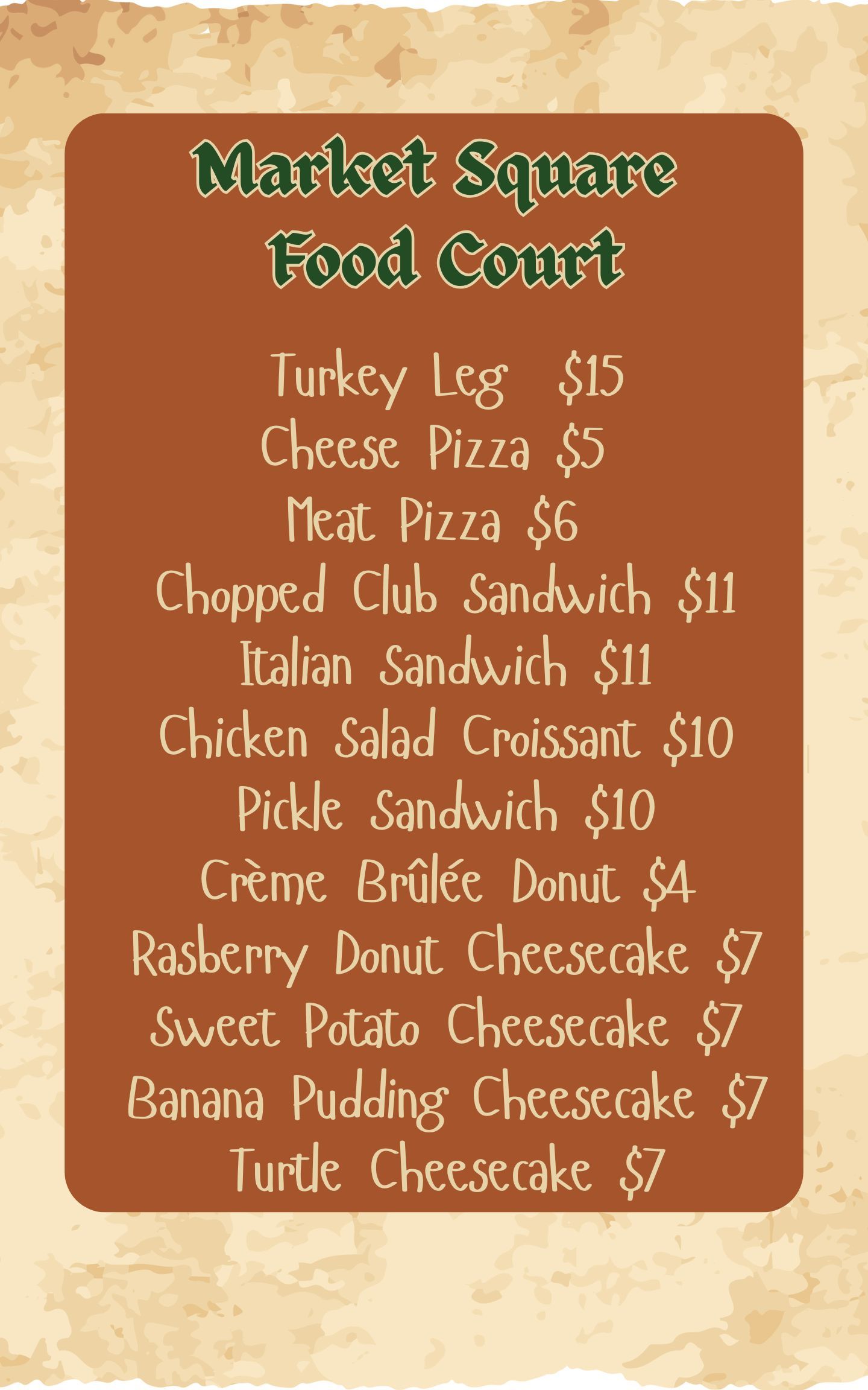 A large selection of sandwiches, steak-on-a-steak, grilled pork chops, gyros, corn on the cob, and many more tasty treats!